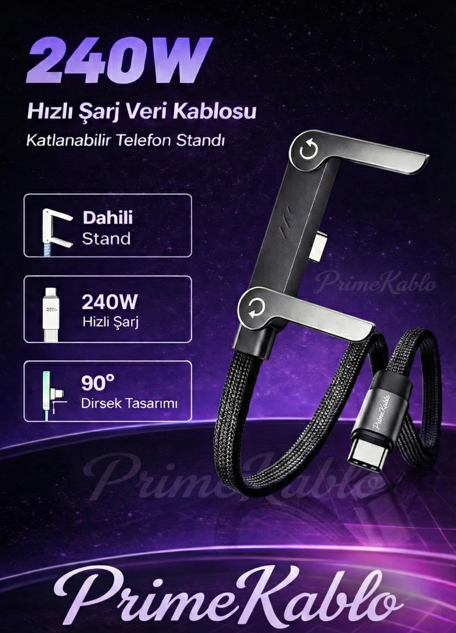 1. Kabloyu Bağlayın - PrimeKablo'yu cihazınıza ve şarj adaptörüne takın. 240W'a kadar hızlı şarj ile şarj edin.